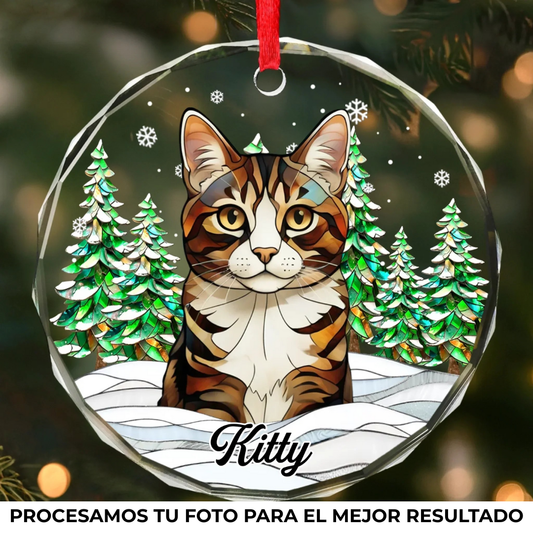 Adorno de Cristal Personalizado con Foto y Nombre de tu Mascota